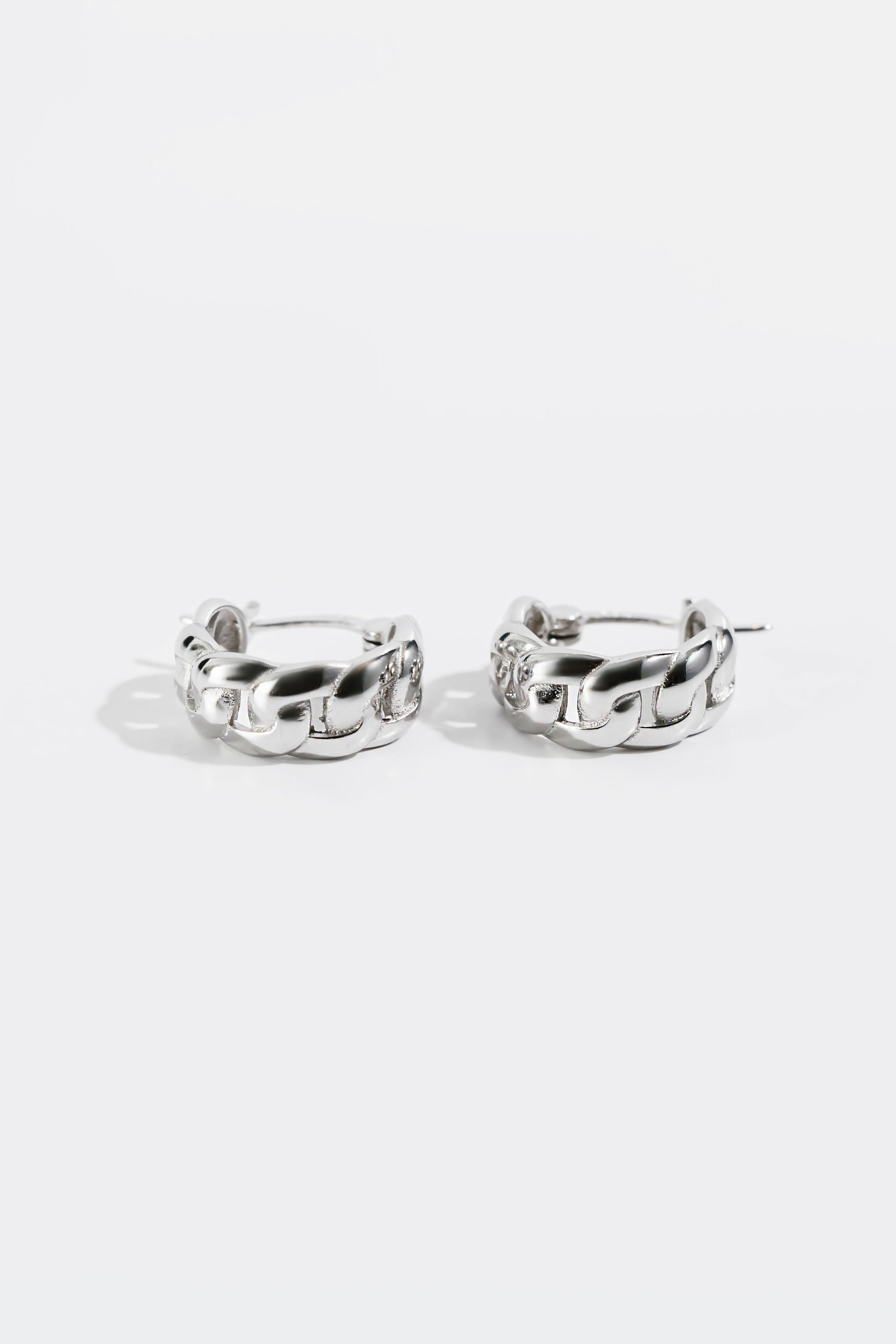 These sterling silver hinged hoop earrings feature a 12mm diameter and a striking curb chain texture that adds a modern edge to a classic silhouette. With their secure hinged closure and polished finish, they’re the perfect balance of bold detail and everyday versatility.