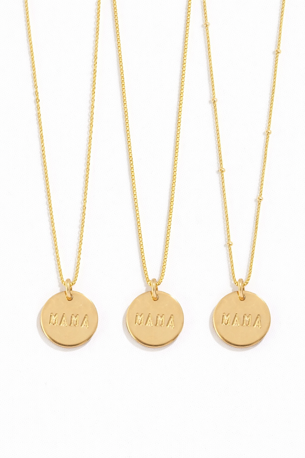 Meet the Mama Disc Necklace. A delicate, hand-stamped 'MAMA' pendant on a fine chain, this necklace symbolizes love and strength, making it a timeless and thoughtful gift for mothers everywhere.
