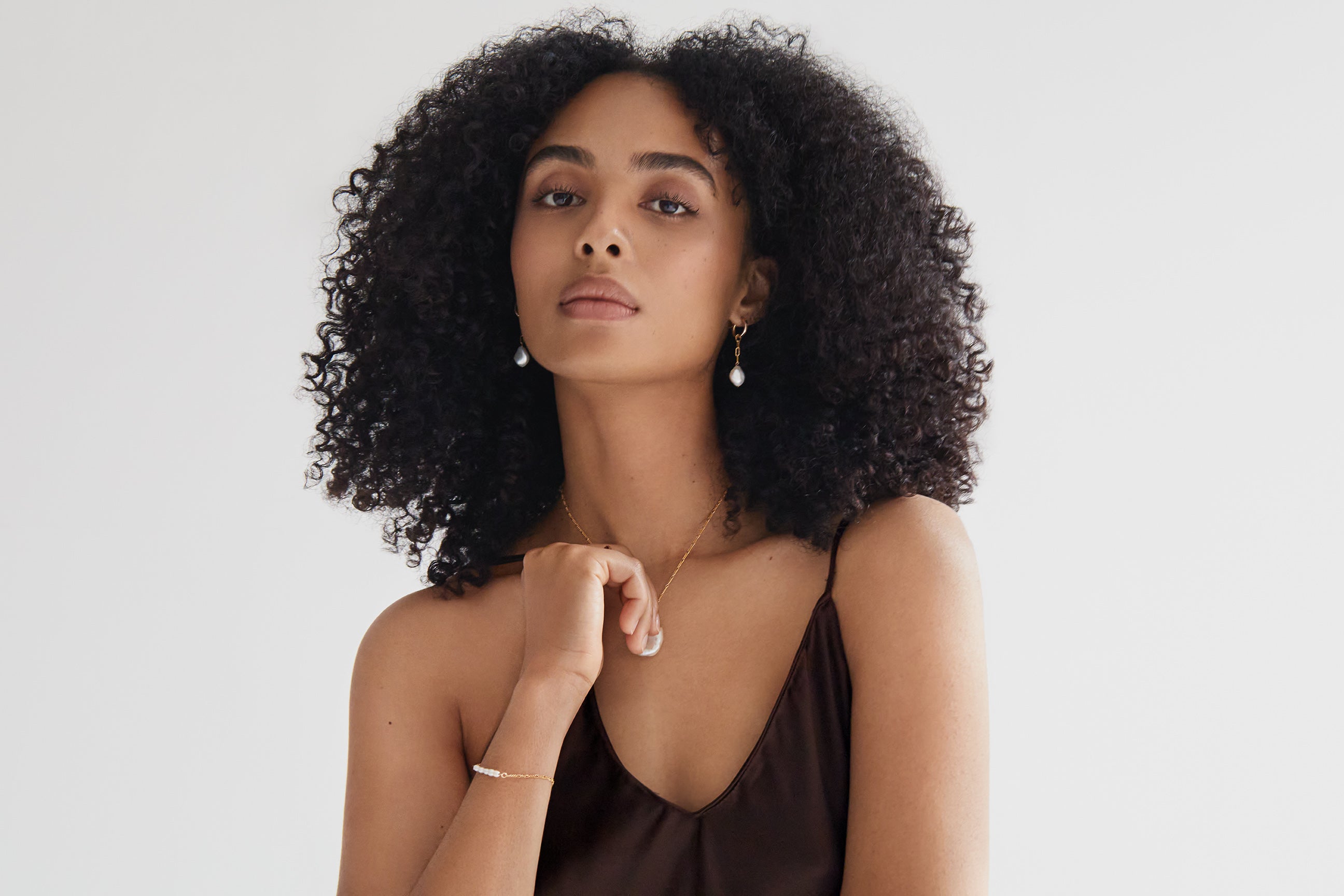Meet the Marina Drop Hoop. Modern hoops with polished chain detailing and a luminous pearl for a bold-meets-delicate vibe.
