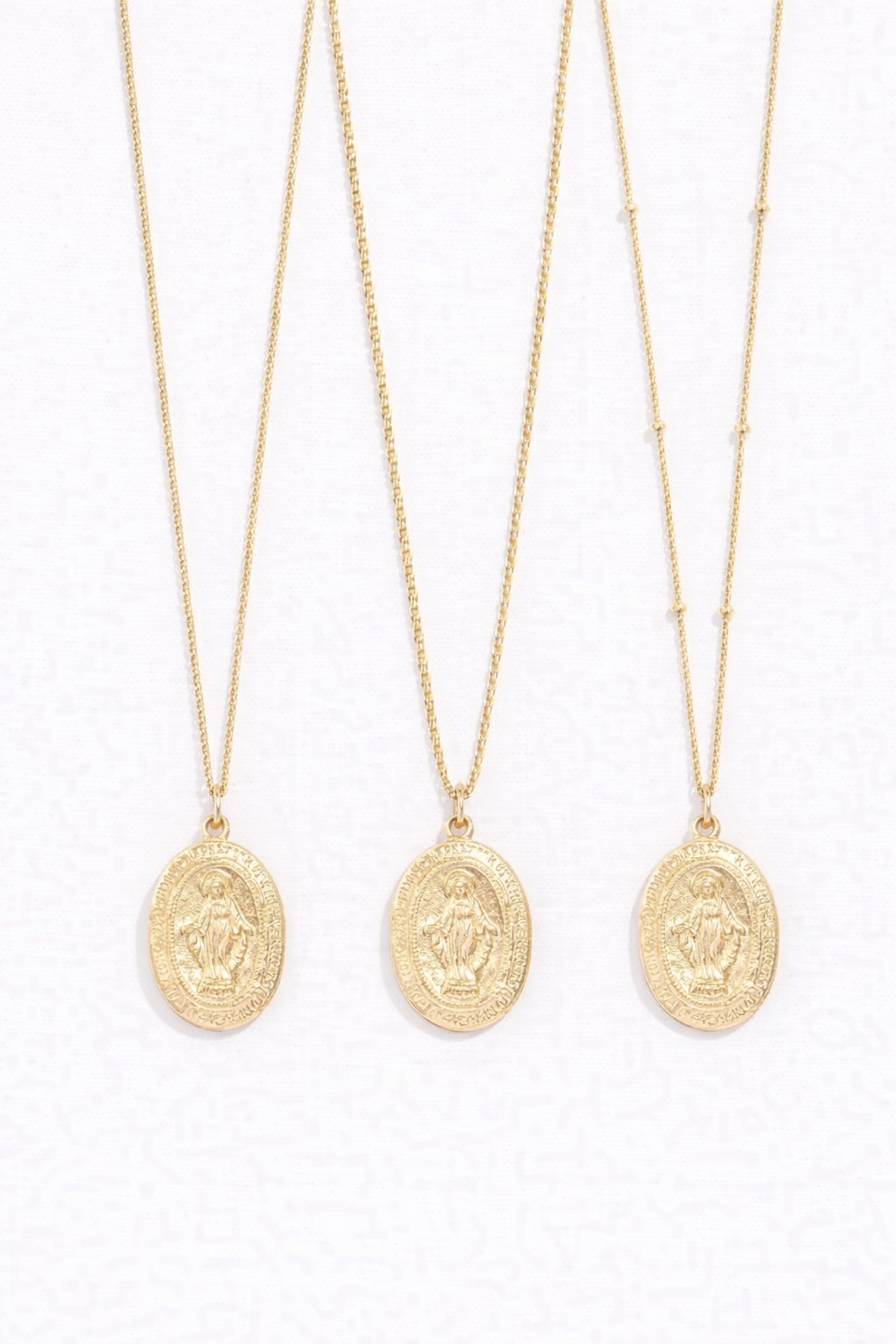Meet the Miraculous Medal Pendant. A beautifully detailed oval medallion, this pendant combines sacred imagery with a timeless design, offering both meaning and elegance for any look.