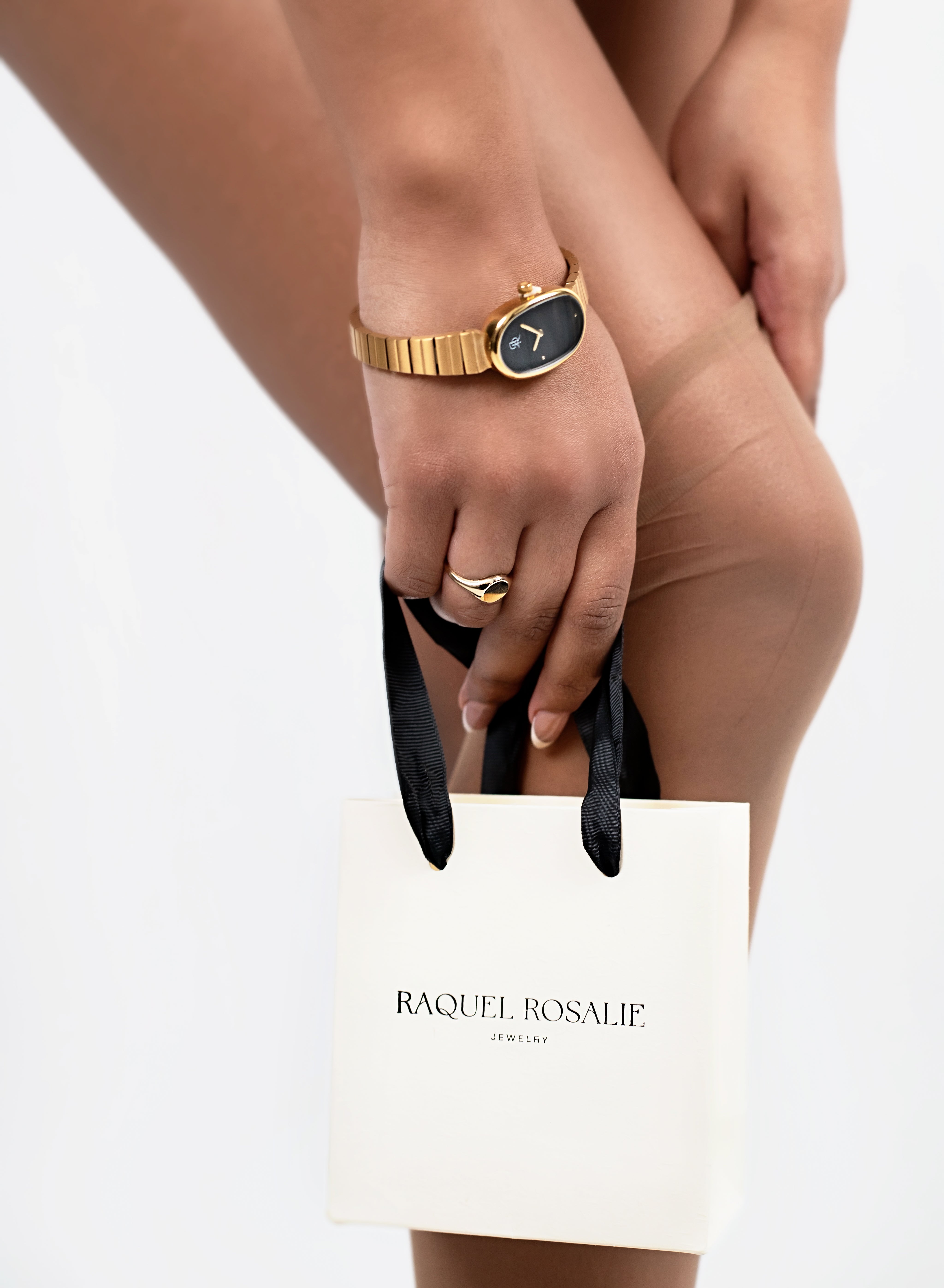 At Raquel Rosalie, we craft high-quality jewelry to last a lifetime. Using premium materials like 10k / 14k solid gold, 14k / 18k gold-filled, sterling silver, and genuine gemstones, every piece meets our highest standards.