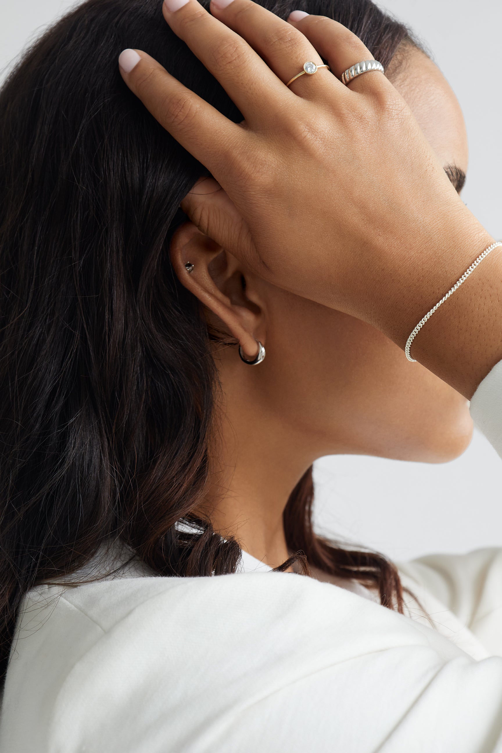 This elegant Huggie earring is crafted from polished sterling silver, offering a sleek and modern silhouette that hugs the earlobe comfortably. At its center, it features a brilliant marquise-cut cubic zirconia stone, expertly set to catch and reflect light with every movement. The marquise shape adds a touch of sophistication and elongates the look, while the high-shine silver enhances the stone’s sparkle. Perfect for everyday wear or a subtle accent to an evening look, this piece blends timeless charm with contemporary style.