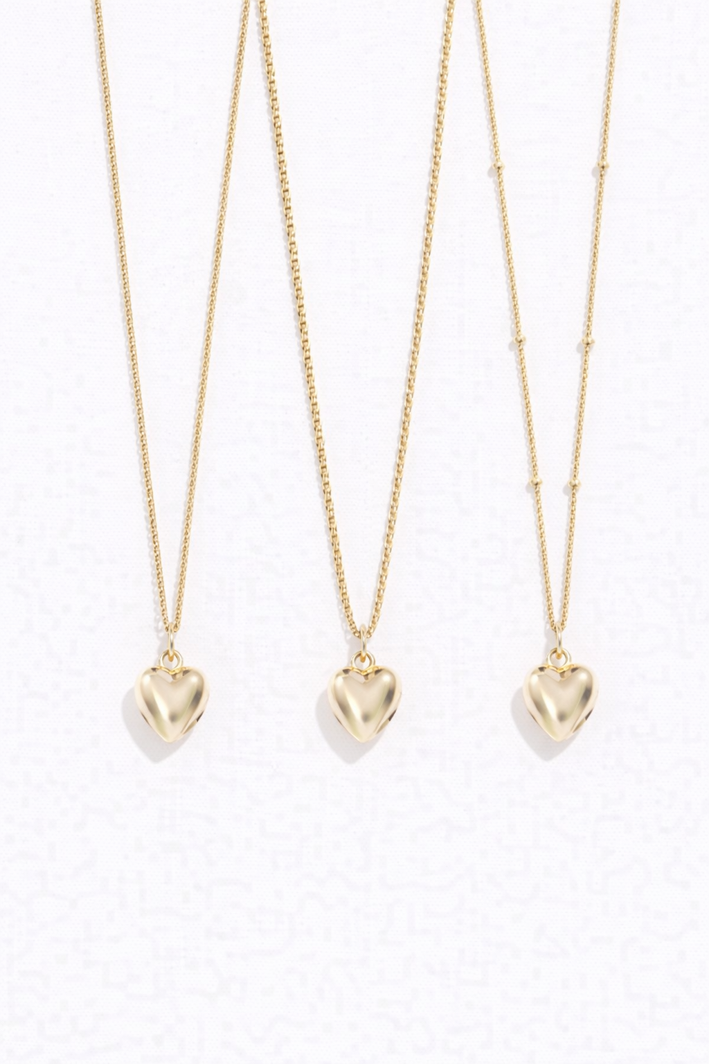 Meet the Puff Heart Necklace. Designed with a bold, puffed heart charm, this necklace brings a timeless shape and contemporary appeal to your look. Choose your chain to complete the look!