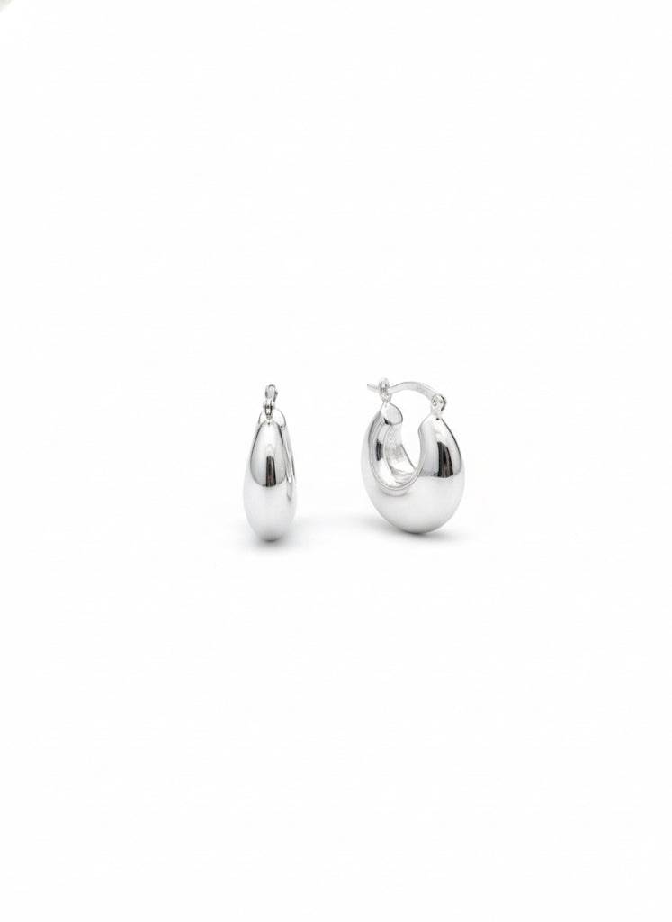 These small hinged sterling silver hoop earrings feature a softly puffed, tapered design that adds subtle dimension and shine. Their smooth, rounded silhouette offers a modern yet timeless look, while the secure hinge closure ensures effortless everyday wear. Lightweight and versatile, they elevate any outfit with a clean, refined touch.